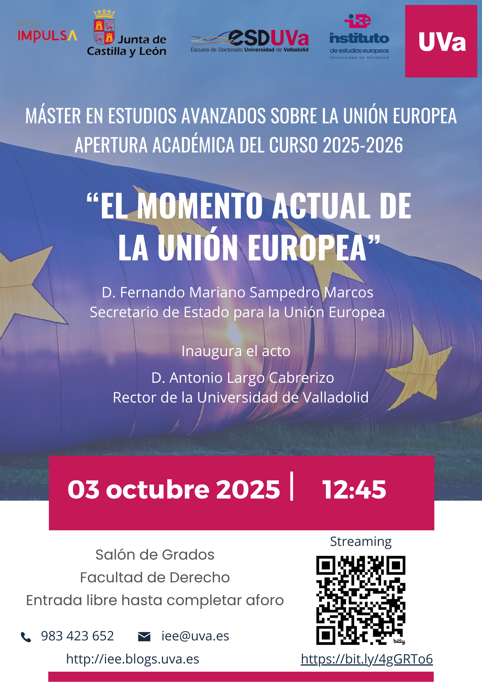El Secretario de Estado para la Unión Europea, Fernando Santiago, impartirá la conferencia inaugural del Máster en Estudios Avanzados sobre la Unión Europea el viernes 3 de octubre a las 12:45 horas en el Salón de Grados de la Facultad de Derecho.